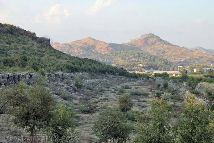 Auf dem Fußweg erreicht man nach wenigen Metern das ehemalige Stadion von Aspendos. Leider wurde das Stadion, wie viele antike Bauten weltweit, von nachfolgenden Generationen als Steinbruch genutzt. Aspendos ist noch nicht ausgegraben. Von daher könnten zumindest Teile des Stadions irgendwann nach sorgfältiger Rekonstruktion zu neuem Leben erwachen. |