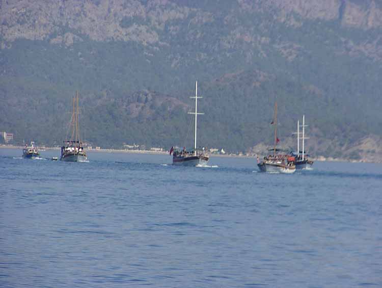 Samstags ist gewöhnlich Gastwechsel auf dem Booten der Blauen Reise. Je nachdem wann die letzten Gäste an Bord kommen, beginnt die meist einwöchige Reise entlang der Küste. Oft setzt sich eine kleine Armada an Gulets gleichzeitig in Bewegung. Ein Wettrennen um die besten Liegeplätze in den schönsten Buchten beginnt. |