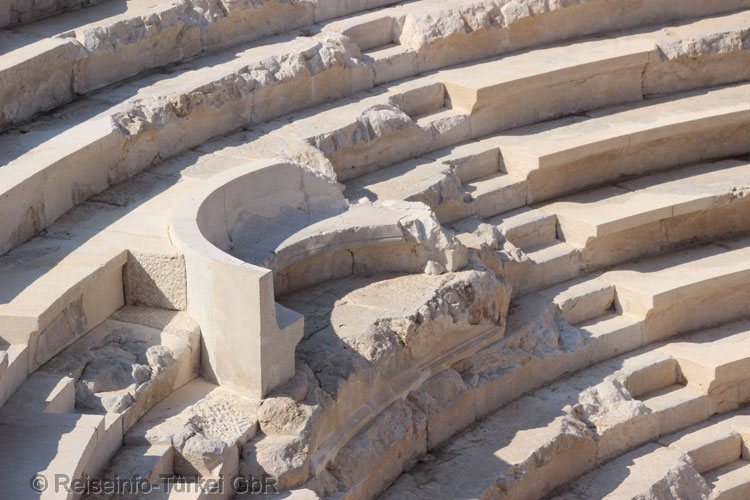 Eine Besonderheit des Bouleuterions von Patara ist der Ehrensitz in Form einer Exedra in der Mitte der cavea. Man kann sich mit etwas Phantasie auf diesem Platz den Vorsitzenden der Versammlung in wallenden Gewändern vorstellen; ganz so wie wir es aus Historienfilmen kennen. |