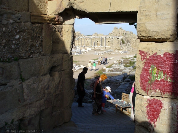 Im Nordosten befindet sich in der byzantinischen Stadtmauer ein schmaler Durchgang zur Staatsagora und der Bibliothek. Das Teilstück dieser Landmauer zieht sich vom Theater entlang der Handels- und weiter östlich vorbei an der Staatsagora bis zur Ostseite der Halbinsel. |