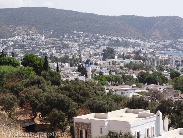 Zum Landkreis, bzw. der Halbinsel Bodrum gehören folgende Gemeinden: Bitez, Göltürkbükü, Gümüşlük, Gündoğan, Gümbet, Konacık, Mumcular, Ortakent, Torba, Turgutreis, Yalı, Yalıkavak. |