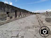 Die Agora war das zentrale Handelzentrum für die gesamte Region. Eine breite Treppe verband eine untere mit der oberen Agora und mündete an der oberen Agora in einer Stoa mit Geschäften auf beiden Seiten. Einige Funde lassen darauf schließen, dass das große Prunktor am Ende der Treppe einmal mit seitlichen Toröffnungen versehen war |