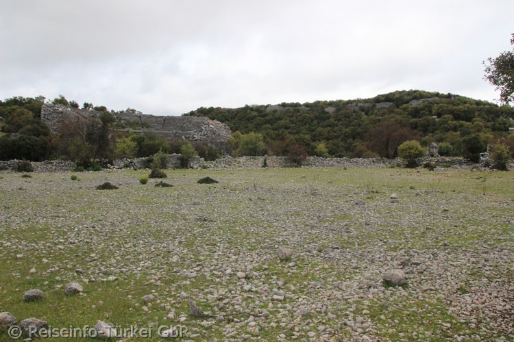 Die antike Stadt Kyaneai liegt an der D400, oberhalb des türkischen Dorfes Yavu auf einem Bergrücken. |
