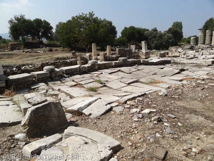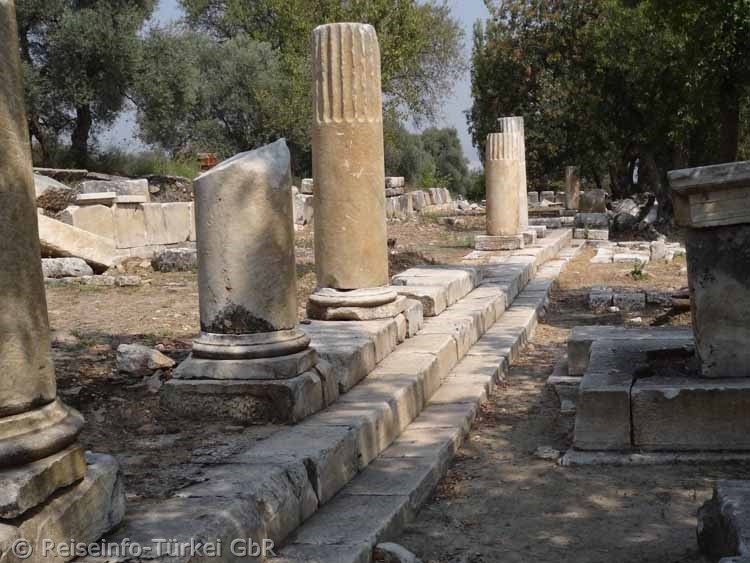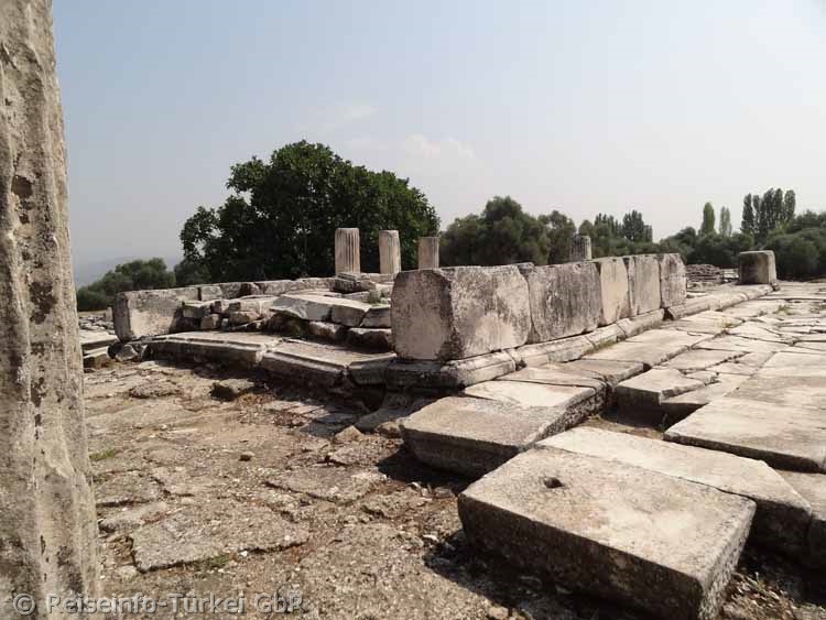 Lagina wurde von einer 2 Meter hohen Mauer umgeben, die die Rückwand der Stoa bildete. Sie ist zum Teil heute noch zu sehen. |