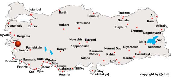 Die Ruinen von Metropolis sind auf Höhe der Stadt Torbalı bereits von der Autobahn Aydın/Izmir zu sehen. Sie erreichen die antike Stadt am besten über die D550 von Torbalı aus. Der Weg dorthin ist braun ausgeschildert. |