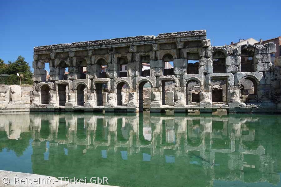 Der antike Pool vor der Fassade des Badehauses aus dem 1. Jh. n. Chr. | |||