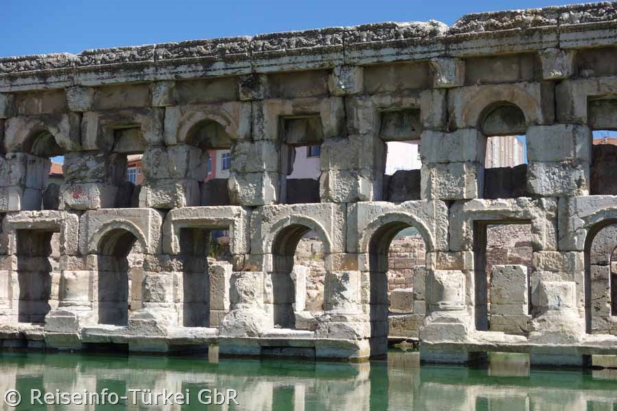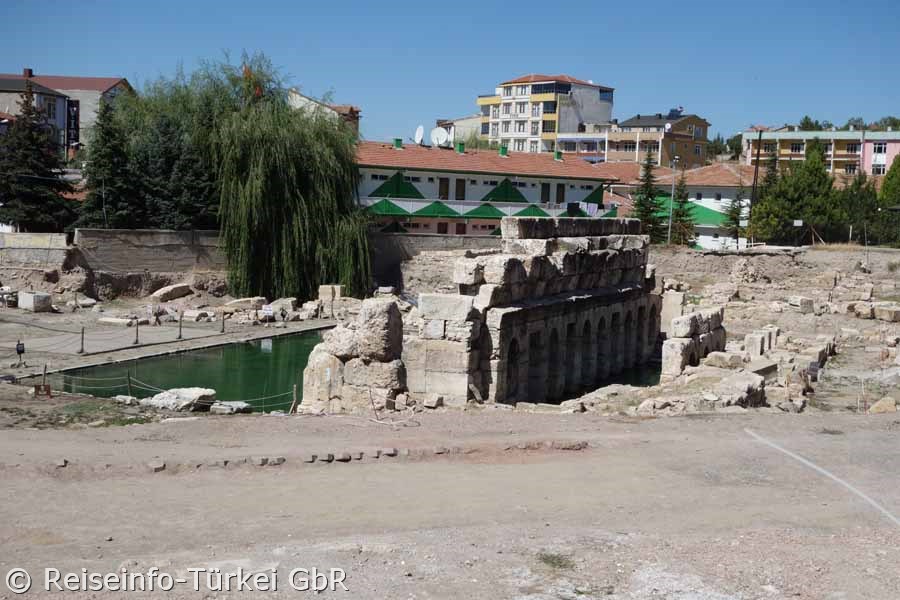 Das heutige Sarikaya war in römischer Zeit unter dem Namen Aqua Sarvenae bekannt. Als wichtiges Kurzentrum genoss die antike Stadt einen herausragenden Ruf. Die römische Stadt wurde durch ein Erdbeben zerstört, nur die Ruinen Bäder sind geblieben. Noch heute werden die Thermalquellen im Südosten der Stadt genutzt. Sie gehören zu der Gruppe der fluoridhaltigen Wässer mit 28 l / Sek. Flussrate. Die Temperatur des heißen Quellwassers beträgt 48 ° C und wird bei 38–40 ° C verwendet. |