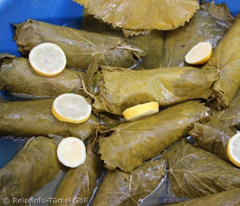 | 3. | Ist die Flüssigkeit restlos vom Reis aufgenommen, die Kräuter untermischen und mit Pfeffer und Salz abschmecken. Die Masse etwas abkühlen lassen und damit die Weinblaetter füllen. |