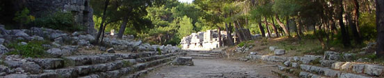 Die Stadt soll den Quellen nach um 690 v. Chr. als rhodische Kolonie gegründet worden sein. Sie gehörte ab etwa 550 v. Chr. lange Zeit dem Perserreich an – eine Stellung, die für viele kleinasiatische Griechenstädte kulturell und wirtschaftlich wichtig war. Politisch wurde dies in Athen jedoch zum Vorwand genommen, um die athenischen Aktivitäten des Attischen Seebundes als antipersisches Kampfbündnis zu tarnen. So wurde Phaselis im Jahre 469 v. Chr. „zwangsbefreit“ und in den Seebund gezwungen – als blühende Handelsstadt mit hohen Tributen in strategisch wichtiger Lage ein bedeutender Zugewinn für Athen. Nach 411 v. Chr. abermals persisch, ergab sich Phaselis 333 v. Chr. Alexander dem Großen. Während der Diadochenkriege zunächst ptolemäisch (bis 197 v. Chr.), dann seleukidisch (bis 187 v. Chr.) wurde es, obwohl Pamphylien zugehörig, unter römischer Herrschaft bis etwa 100 v. Chr. dem Lykischen Bund eingegliedert. Der starke Konkurrent Attaleia (Antalya) als Hafen- und Handelsstadt brachte Phaselis einen ersten Niedergang, der es Anfang des 1. Jahrhunderts v. Chr. gemeinsam mit Olympos zu einem Schlupfloch kilikischer Seeräuber herunterkommen ließ. Unter Domitian, Trajan und Hadrian wurde die in den Seeräuberkriegen zerstörte Stadt Ende des 1. Jahrhunderts n. Chr. repräsentativ wieder aufgebaut und erlebte eine zweite Blüte. Aus dieser Zeit stammen die meisten der heute erhaltenen Ruinen. Von den späteren Einfällen der Piraten und Araber in der Mitte des 7. Jahrhunderts erholte sich Phaselis jedoch nie mehr, auch wenn es als byzantinischer Flottenstützpunkt im 8. Jahrhundert vorübergehend noch einmal wirtschaftlich aufstieg. Seit dem 10. Jahrhundert diente es nur noch als Steinbruch für Antalya, das Material für seine Befestigungen benötigte. Quelle: Wikipedia u.a. |