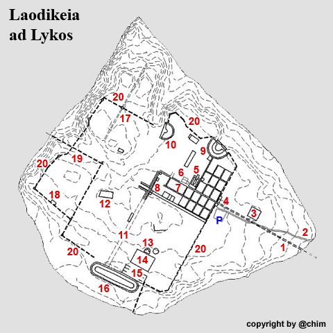 Plan der antiken Stadt Laodikeia ad Lykos