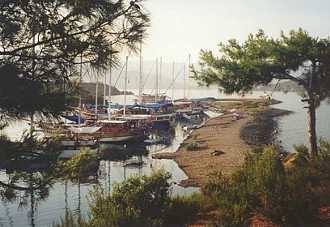 Göcek Nach dem Frühstück geht es zur Göcek-Insel, wo Ihr in wunderschöner Umgebung Badefreuden genießen könnt. Mittagessen in der Hamam-Bucht. In dieser Bucht sollen sich einst die Bäder der Kleopatra befunden haben. Heute findet man dort eine teils ins Wasser ragenden Ruine undefinierten Ursprungs. Das neben der Ruine liegende rustikale "Restaurantschiff" stört die Idylle dieser Bucht genauso wenig wie die langen, primitivst zusammengezimmerten Stege.