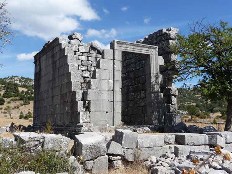 Die Stadt liegt in einem relativ ebenen, weiten Hochtal. Gut erhalten sind noch die vier Kaisertempel des 2./3. Jh. Einer der Tempel ist durch eine Inschrift belegt für die Kaiser und Zeus Sarapis, der zweite für die Kaiser und Aphrodite, der dritte nur für die Kaiser, der vierte durch Münzen belegt für Trajan. Weiter ist ein römisches Forum mit einer großen Schautreppe sowie das Theater erhalten. Ferner zwei spätantike dreischiffige Basiliken. Quelle: Wikipedia |