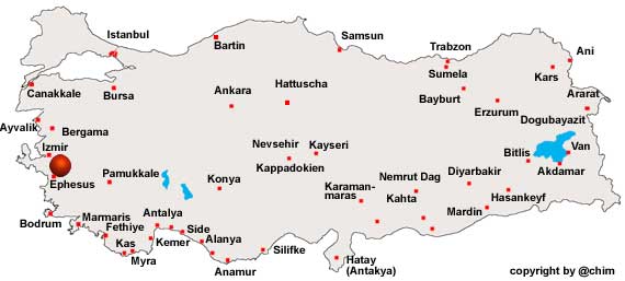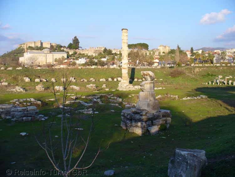 Die Ausgrabungsstelle des Artemision befindet sich an der Hauptstraße nach Kusadası, von Selçuk kommend rechts, etwa 1 km vor der Zufahrt nach Ephesos. |