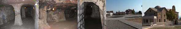 gruppiert. In Kappadokien sind bis heute 36 unterirdische Städte entdeckt, von denen nur ein kleiner Teil für Besichtigungen aufbereitet ist. Das weiche und dadurch leicht zu bearbeitende Tuffgestein der kappadokischen Landschaft bietet beste Voraussetzungen für derartige Anlagen. Es wird angenommen, dass sie teilweise schon im dritten Jahrtausend v. Chr. von den Hethitern angelegt wurden. In römischer Zeit wurden sie von den urchristlichen Gemeinden ausgebaut, um Schutz vor der Verfolgung durch das römische Reich zu bieten. Sie wurden zum Teil noch 1838 als Zuflucht vor ägyptischen Truppen benutzt. Später benutzten die türkischen Bewohner die oberen, am leichtesten zugänglichen Räume als Ställe und vor allem als Lagerräume, da dort eine konstante Temperatur von sechs bis acht Grad Celsius herrscht. Noch heute werden in ganz Kappadokien zu Tel uralte, in den Tuff gehauene Räume, zur Lagerung landwirtschaftlicher Produkte genutzt. Quelle: Wikipedia u.a. |