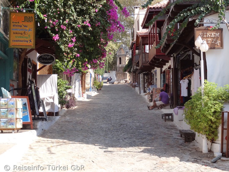 Einst war Kaş ein gänzlich rückständiges Paradies für Hartgesottene und Rucksack-touristen. Heute hat sich die Stadt zu einem Urlaubsort für Einheimische und abenteuerlustige Touristen, vornehmlich aus England gemausert. Zu finden sind neben einigen schönen Restaurants am Hafen inzwischen alles vom Bistro bis zur Discos. Zu empfehlen sind die wunderschönen Ausflüge, die von hier aus z.B. zu den Ruinen von Kekova und zur Burg Simena durchgeführt werden. |