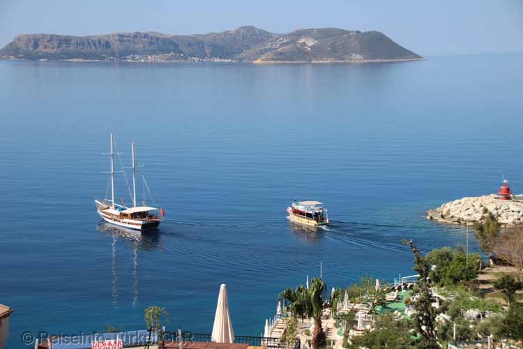 Hafeneinfahrt und die griechische Insel Kastellorizo (türk. Meis) | ||||||