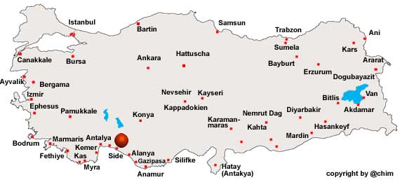 die größte Talsperre in der Region. In den letzten Jahren ist der Stausee zu einem lohnenden Ausflugsziel für interessierte Besucher der türkischen Riviera geworden. Neben einem phantastischen Ausblick von der Staumauer bietet eine Bootsfahrt auf dem See eine willkommene Abwechslung vom Strandleben. |