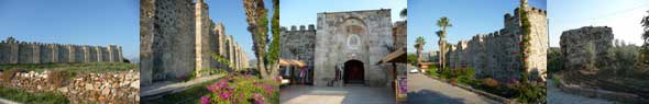 Sie erreichen den Şarapsa Han über die Nationalstraße D400, aus Richtung Antalya/Manavgat kommend, 13 km vor Alanya. Da an der Han eine Abbiegemöglichlichkeit fehlt, sind aus dieser Richtung kommende Autofahrer gezwungen, bis zur ersten Wendemöglichkeit nach 1,5 km weiter zu fahren. Wie auf dem Foto deutlich zu erkennen, verhindert ein durchgehender Zaun auf dem Mittelstreifen das gefährliche Überqueren der viel befahrenen Küstenstraße. |