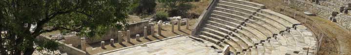 restaurierten Analemmamauern. Die Sitzsteine der beiden oberen Ränge
