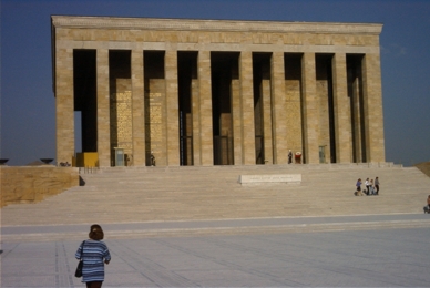 Wer Ankara besucht, wird das Anit Kabir, das Mausoleum des Staatsgründers Mustafa Kemal Atatürk, besuchen. Für diese weitläufige, in den Jahren 1944-53 erbauten Anlage wurde der Anit Tepe, ein einst bebauter Hügel der Stadt, vollständig geräumt und nur dem Zwecke der Verehrung Atatürks gewidmet. |