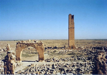 Viel ist von der einstmals stolzen Stadt nicht mehr zu sehen. Was wir sehen, sind die Reste einer großen Omayadenmoschee, wie sie noch heute in Aleppo und Damaskus zu finden sind und der ersten islamischen Universität. Das auf dem Foto sichtbare Tor soll beide Komplexe verbunden haben. |
