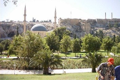 Der gesamte Bezirk um die Geburtsgrotte und den heiligen Teich ist heute eine wunderschöne, gepflegte Anlage mit schattigen Wegen und einem großen Platz der Begegnung. Überragt wird alles von der mächtigen Zitadelle. |