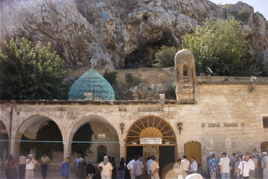 Das Ziel vieler islamischer Pilger ist die Geburtsgrotte Abrahams. Da Sara, Abrahams Frau, im hohen Alter von Gott erhört wurde und einen Sohn gebar, pilgern die Frauen zu den heiligen Quellen im Innern der Grotte und bitten um Fruchtbarkeit. Streng nach Geschlechtern getrennt, suchen die Gläubigen die enge Grotte auf. |