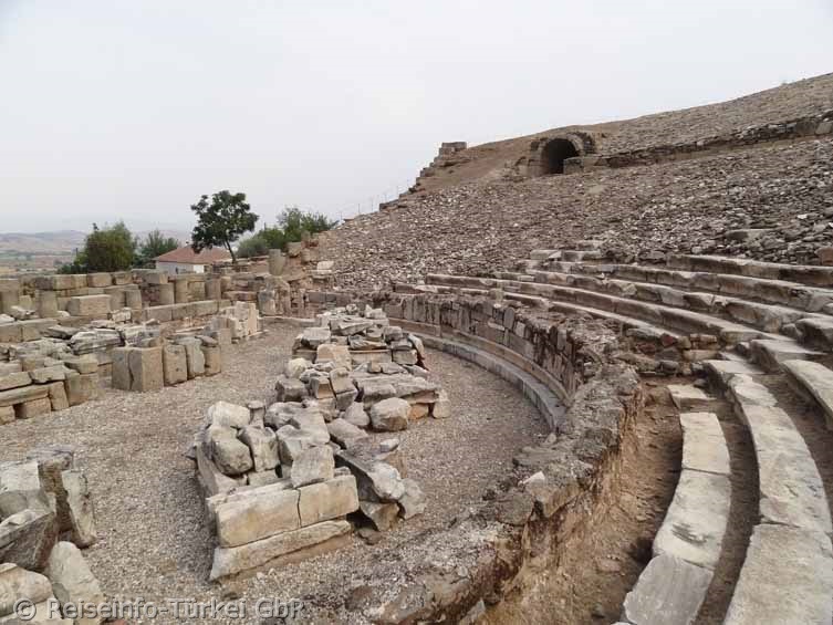 Deutlich zu erkennen: Die nachträglich angebrachte Abtrennung der cavea zur orchestra