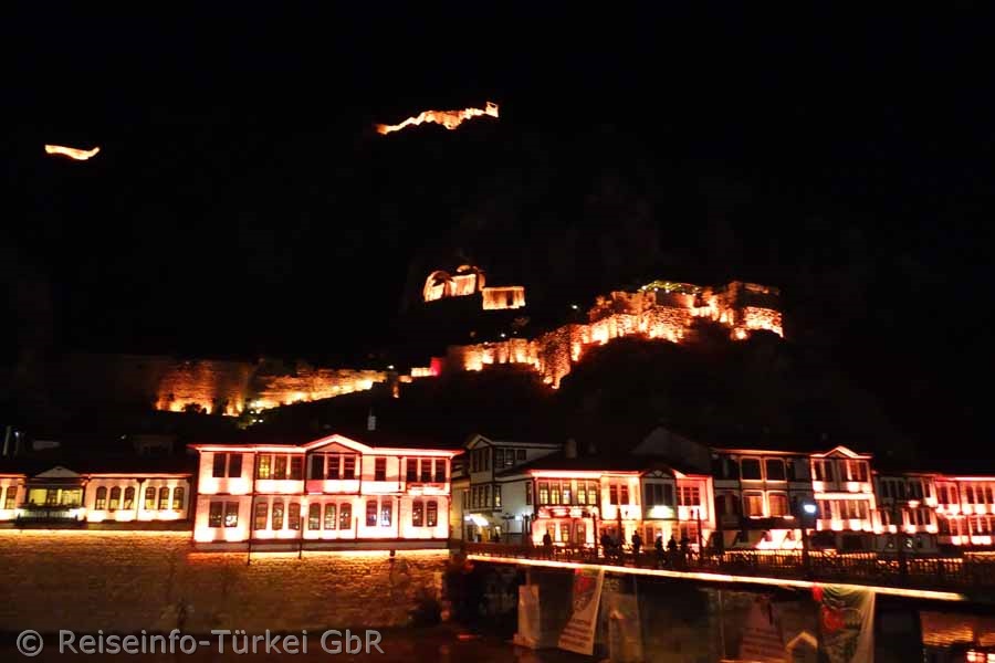 (2018) Die beleuchteten Häuser am Yeşilırmak, oben die