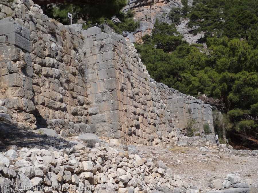Arykanda (2016) Die Stützmauer des Stadions (über dem Theater)