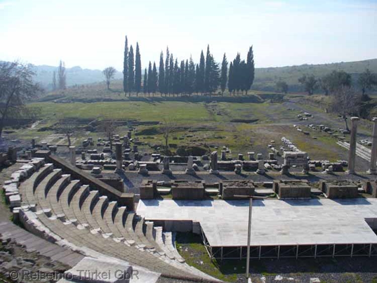 Theater Im Hintergrund vor den Zypressen der Wandelgang zum antiken