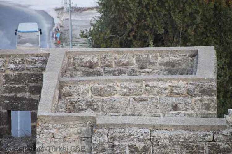 Theater von Aspendos Rechter Seitentrakt des Bühnenhauses, von der Akropolis aus gesehen (Oktober 2011)