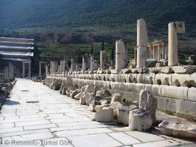 der Marmorstraße rechts die Umfassung der Handelsagora,