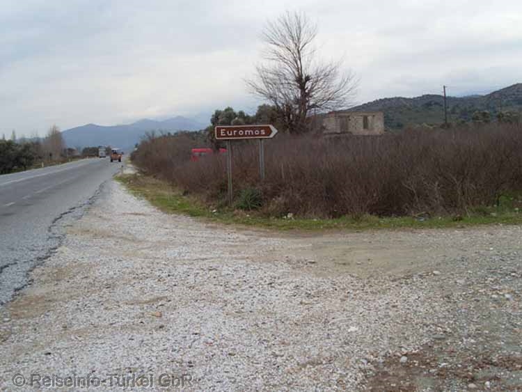 Euromos (2009) Hinweisschild an der D 525, 12 km von Milas entfernt, Richtung