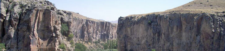 150 m tiefe Schlucht im Südwesten Kappadokiens. Im Tal