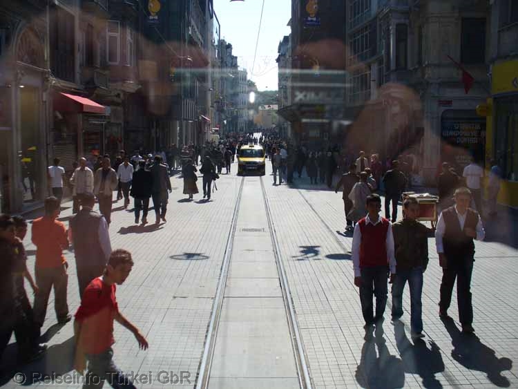 Mit der Straßenbahn durch die Fußgängerzone der İstiklal Cd. zum Taksimplatz