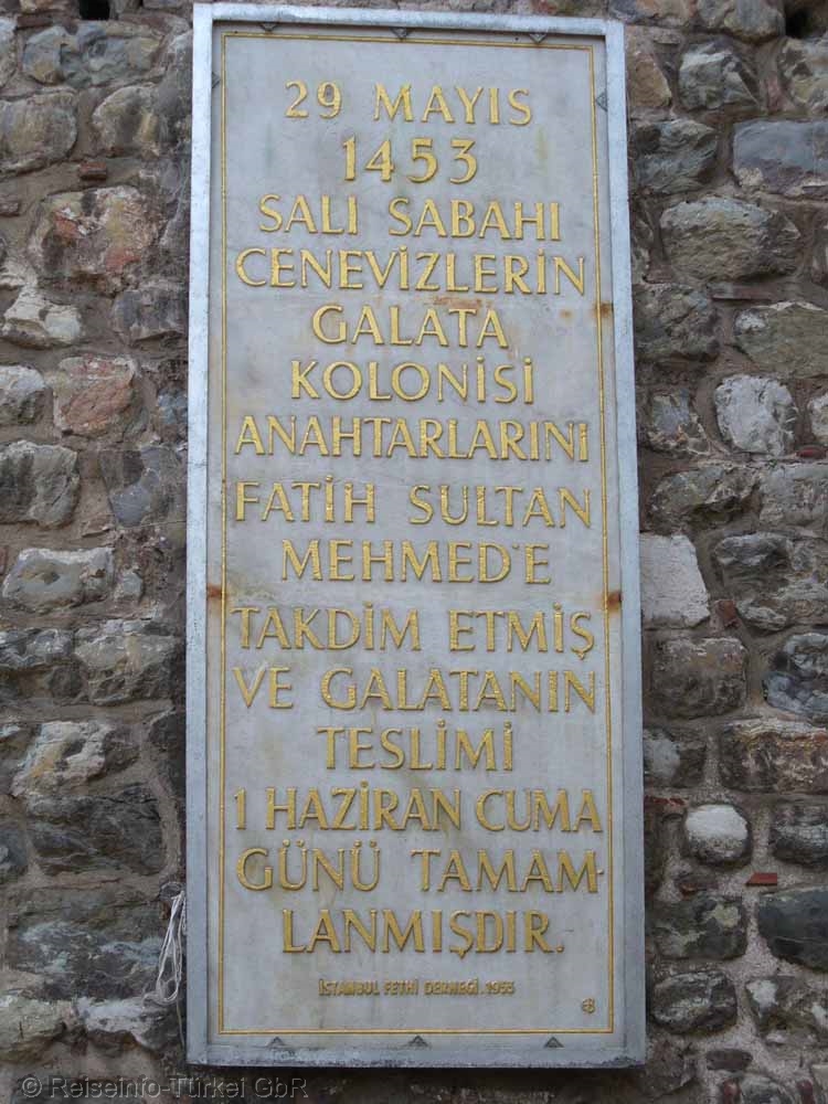 Gedenktafel an die Zerstörung am 29. Mai1453 und den Wiederaufbau durch Sultan Mehmet Fatih