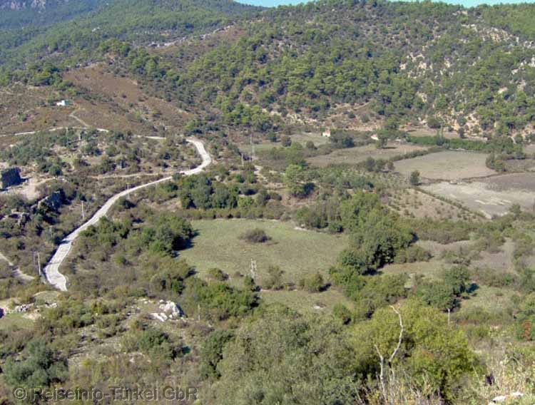 Blick von der Akropolis auf die Straße von Dalyan nach Ekincik