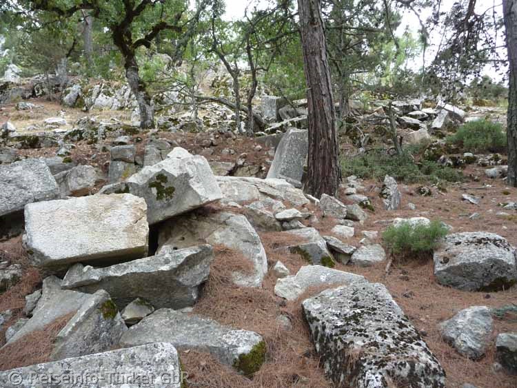 Zerstörte Gebäude auf der Nordseite des Stadthügels