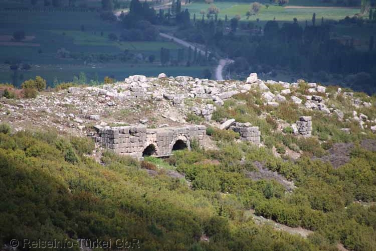 Fundament eines Tempels, oberhalb des Stadions