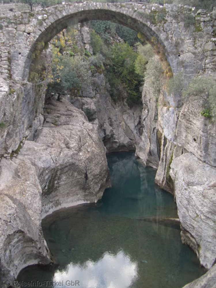 Die Eurymedonbrücke vor der Renovierung in den 80er Jahren bei absolutem Niedrigwasser