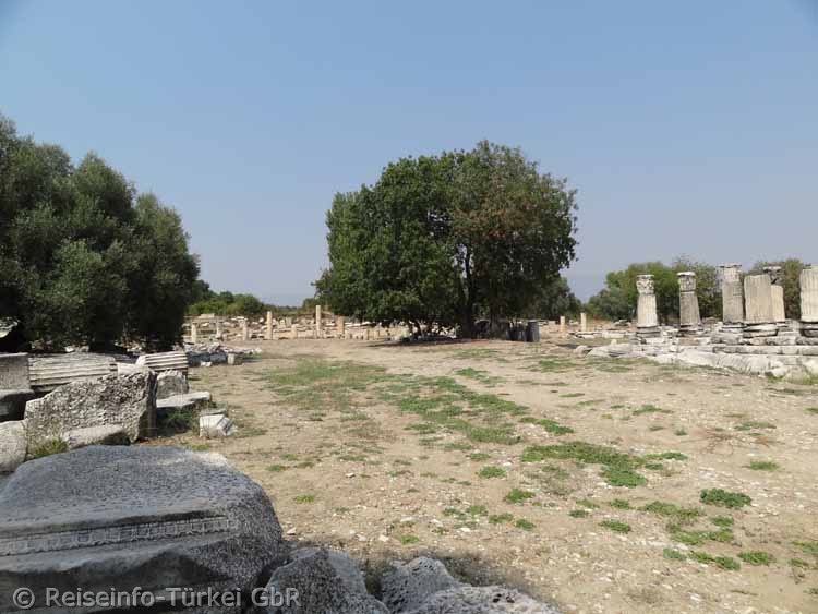 Rechts der Tempel der Hekate, gerade aus die nördliche Stoa