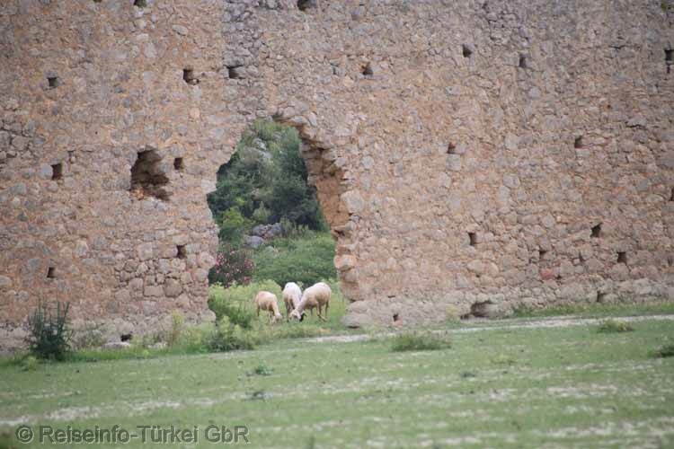 Schafe weiden innerhalb der Mauern der byzantinischen Kaserne