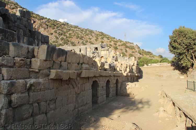 Das Bühnenhaus von außen (erst kürzlich ausgegraben)