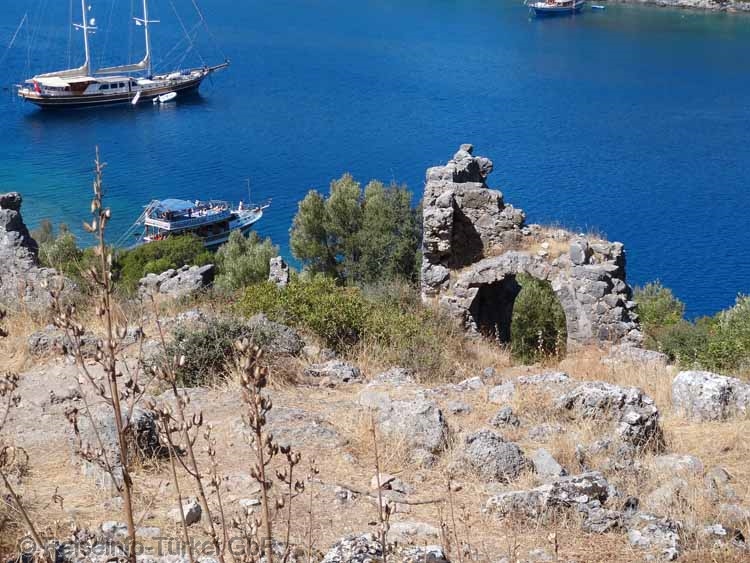 Ausflugsboot und Gulet der Blauen Reise vor der Insel