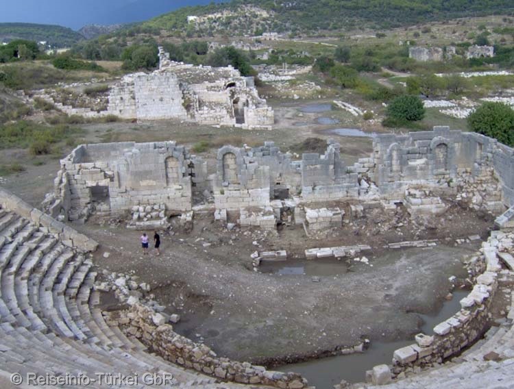 (Blick auf das Bühnenhaus, im Hintergrund das Bouleuterion)