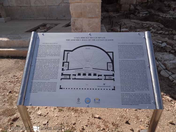 Erklärungen vor dem Bouleuterion (auf türkisch und englisch)