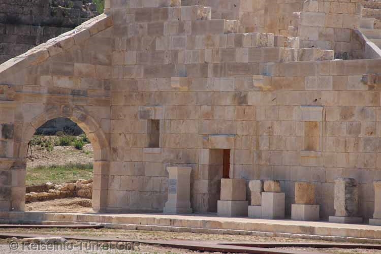 Die linke Seite des nicht rekonstruierten Portikus (Säulenvorhalle)