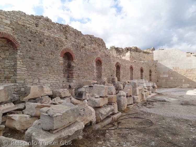 Mauer links neben dem Mausoleum. Trennwand zum Aufgang zur Akropolis
