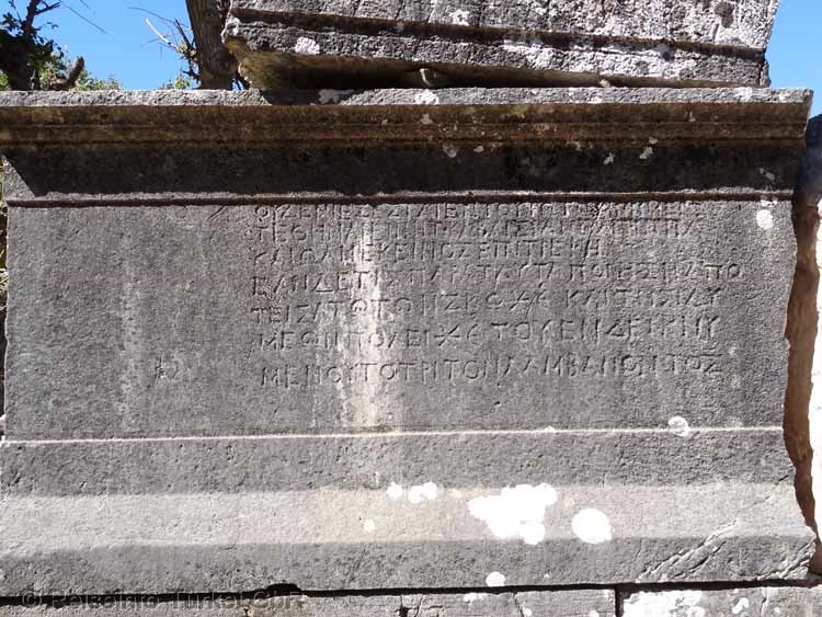 Inschrift am Unterbau eines Sarkophages